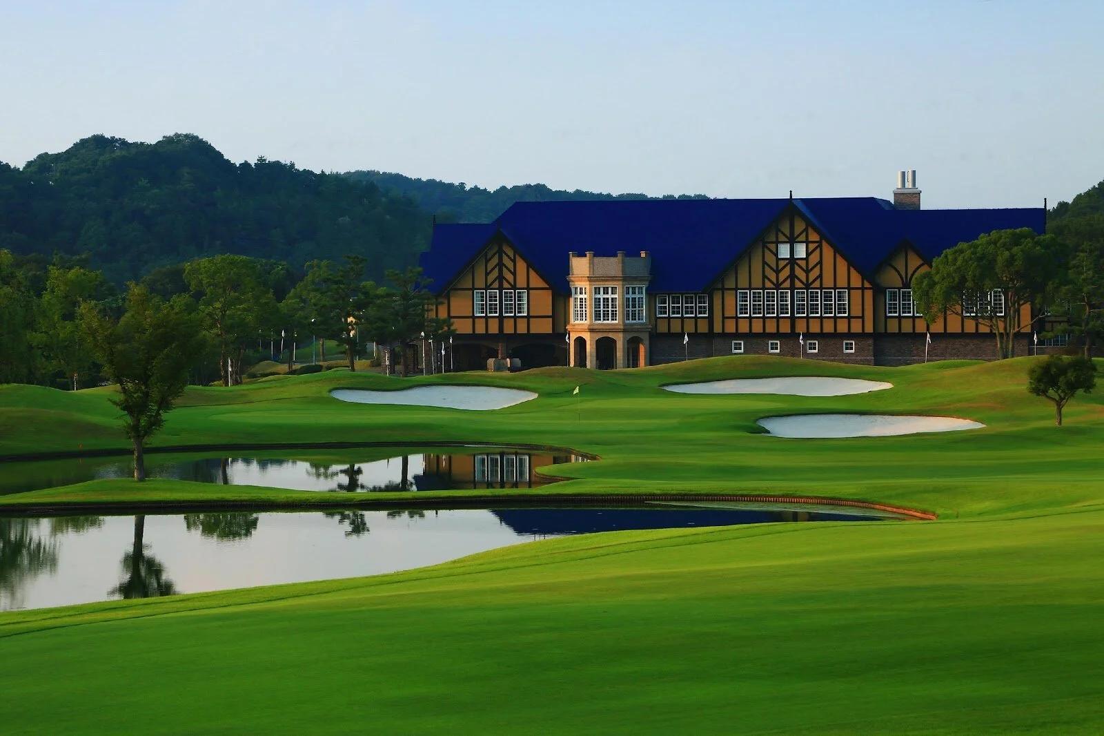 The back nine is reasonably long, especially the par 5 14th which plays 608 yards slightly uphill but the variation in the design of the back nine makes them interesting. The short par four 12th and 16th give players some respite before tackling two of the most iconic holes in the Kansai region. The 17th is a downhill par 3 of just over 200 yards and is a stunning setting. The small well-bunkered green requires a very precise shot. The 18th is tough and a testament to simple but great design. Jumbo Ozaki who won the Mitsubishi Galant tournament in 1987 at Rokko said the 18th is one of the best finishing holes in golf. The 18th is a dogleg left Par 4 of 435 yards with water left. If you play bravely towards the water your second shot is relatively simple. Every meter you play to the right makes the hole increasingly more difficult and a shot from the right rough, where most people end up, requires a layup. The 18th green has three very distinct sections and looks like Mickey Mouse’s face, allowing for a huge variety of pin positions. It’s a great looking hole especially with the iconic clubhouse as its backdrop.